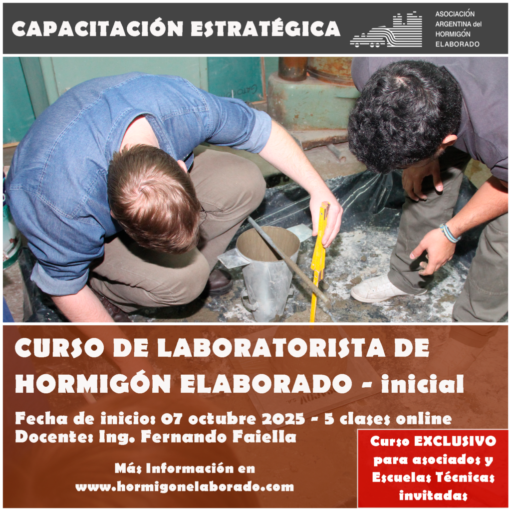 - Curso de Hormigón Elaborado en Laboratorio y Obra Nivel I: Curso de Introducción al Hormigón Elaborado. Introducción a Dosificación y Ensayos Habituales. Introducción a Aditivos.